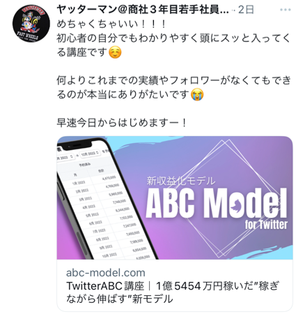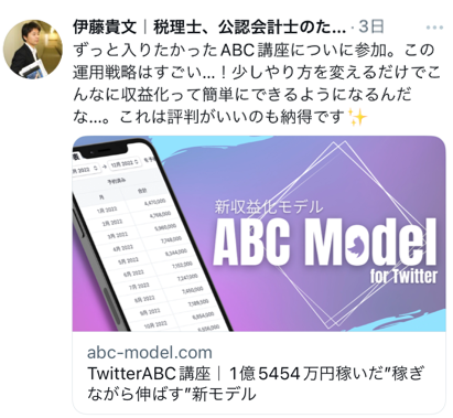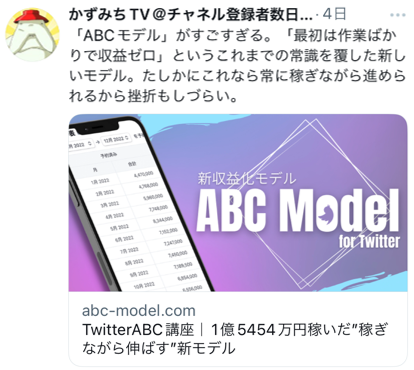 前述したとおり、『ABCモデル』は”働き損”を排除した新しいTwitter収益化モデルです。