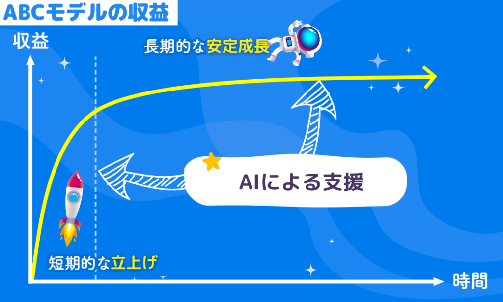 この『ABCモデル』はそんな方のための全く新しい“稼ぎながら伸びていく”収益モデルです。