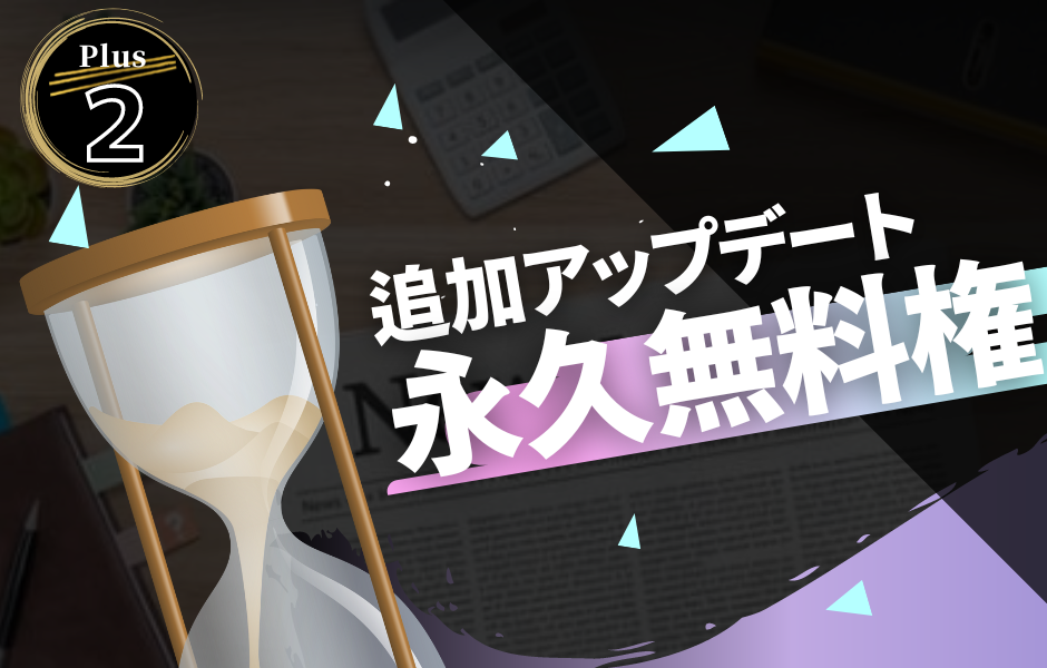 本講座参加者は、今後のアップデートで追加された資料や講座、システムなどのすべてを永遠に無料で受け取り続けることができます