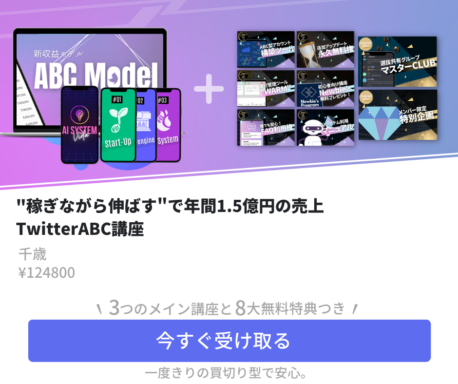 圧倒的なボリュームのABC講座の全てを、今すぐお受け取りください。